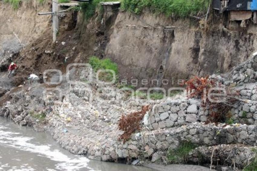 PUEBLA, Pue., 12 Julio 2012.- Inician los trabajos de reconstrucción del muro de contención en la colonia "Providencia" que fue derribado por la corriente del río Alseseca en días pasados como resultado de las fuertes lluvias. //Agencia Enfoque//