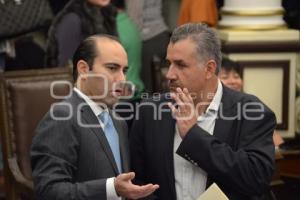 PUEBLA, Pue. a 17 noviembre 2014.- Los diputados Pablo Fernandez del Campo y Miguel Ángel Huepa, presentaron el Congreso Nacional de Derecho Urbanistico y Zonas Metropilitanas. //Mary Cortez/Agencia Enfoque//