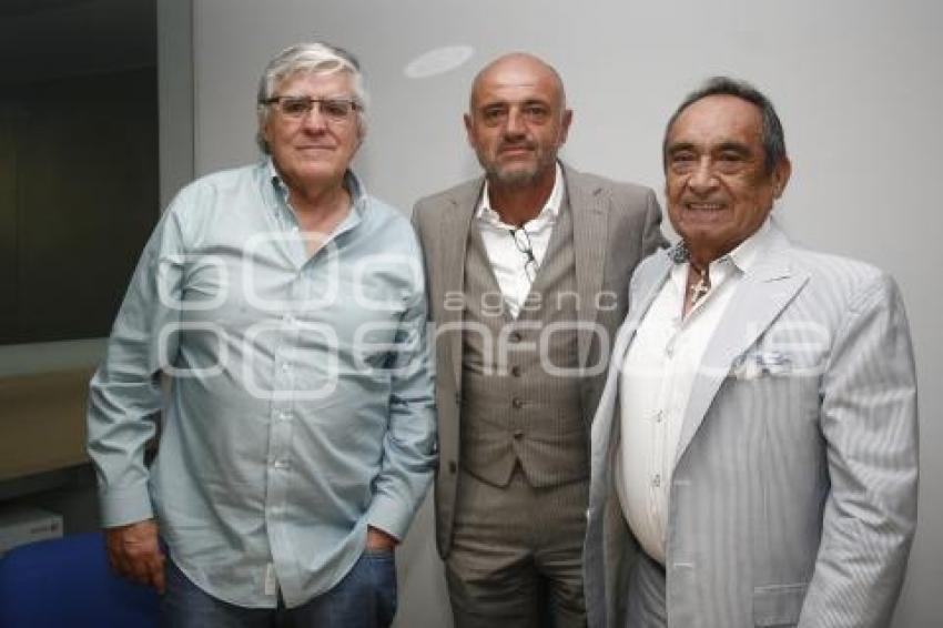 PUEBLA, Pue., 09 marzode 2015.- Nelson Vargas, el director técnico, José Luis Sánchez Solá "El Chelis", y Rafael Moreno Valle Sánchez durante la conferencia motivacional del Chelis, en el Club Deportivo Nelson Vargas. //Francisco Guasco/Agencia Enfoque//