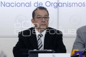 PUEBLA, Pue. 19 Noviembre 2013.- Sergio Curro y Martínez, presidente del Consejo Nacional de Organismo Empresariales (COE) acompañado por Francisco Romero Serrano, vicepresidente del COE realizan una rueda de prensa sobre el impuesto del tres por ciento sobre la nomina y el reemplacamiento del parque vehicular. //Agencia Enfoque//