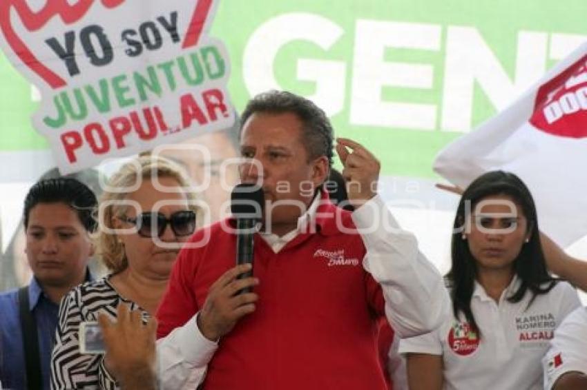 PUEBLA, Pue. 31 Mayo 2013.- El candidato a la presidencia de Puebla por la coalición 5 de Mayo, Enrique Agüera, acompañado del candidato a diputado José Doger, visitaron la colonia Loma Bella, para invitar a los colonos a votar por el PRI-PVEM este 7 de julio. //Javier Palacios/Agencia Enfoque//