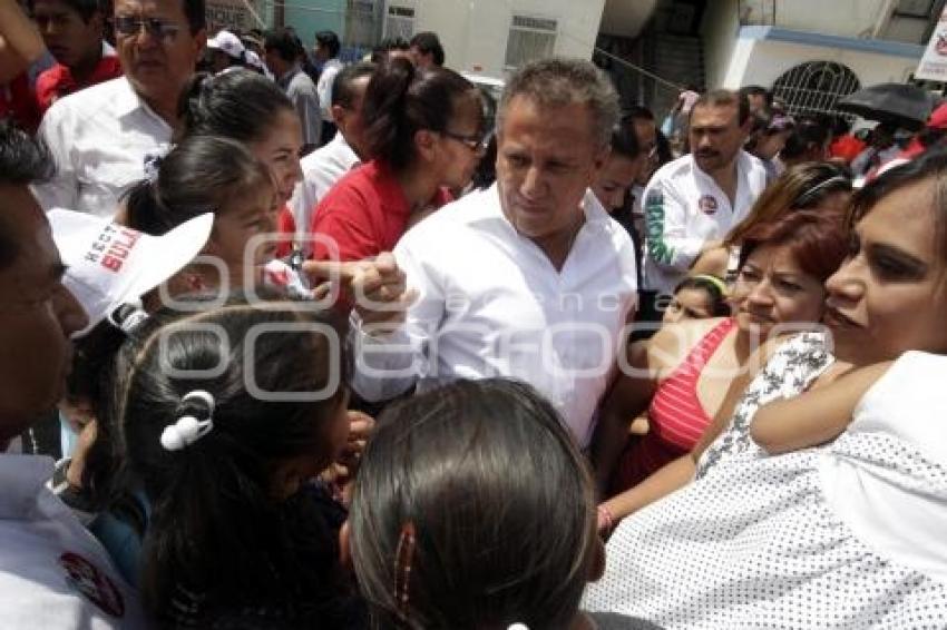 PUEBLA, Pue. 02 Julio 2013.- Enrique Agüera Ibáñez, candidata a la presidencia municipal de Puebla por la Coalición 5 de Mayo acompañado por el candidato a diputado local por el distrito 14, Héctor Sulaiman y la senadora Blanca Alcalá Ruiz cierran campaña en la Unidad Habitacional Xilotzingo. //Mary Cortez/Agencia Enfoque//