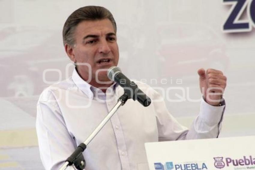 PUEBLA, Pue. 26 Marzo 2013.- Tony Gali, Secretario de infraestructura, en el banderazo de inicio de la pavimentación con concreto hidráulico del zócalo de la junta auxiliar de San Francisco Totimehuacán. //Mary Cortez/Agencia Enfoque//