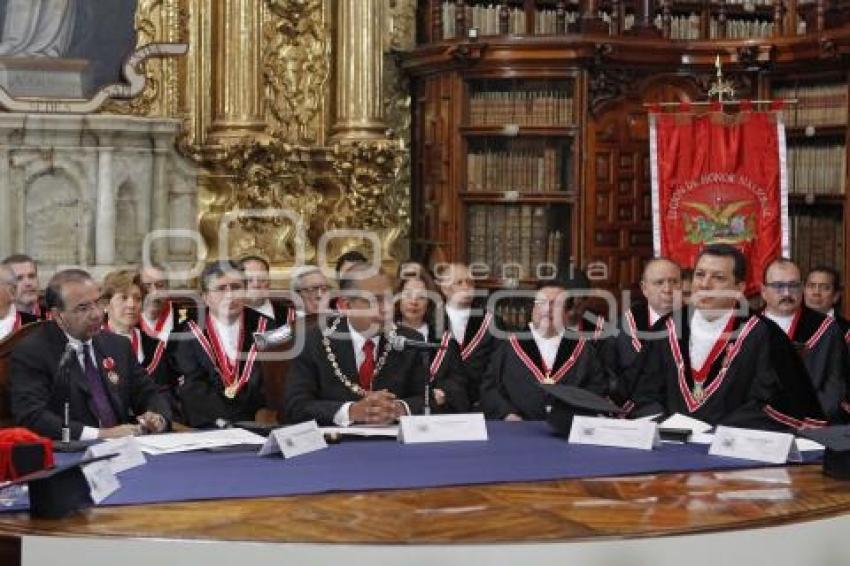 PUEBLA, Pue. 10 Agosto 2013.- La Legión de Honor presidida por su presidente honorario Luis Maldonado Venegas, entrego reconocimientos a los abogados Alfonso Navarrete Prida, Secretario del Trabajo y Previsión Social y Raúl Plascencia Villanueva, Presidente de la Comisión Nacional de los Derechos Humanos por la celebración del día del abogado en la Biblioteca Palafoxiana. //Agencia Enfoque//