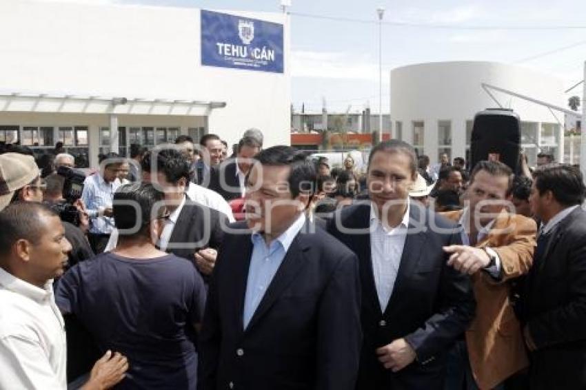 TEHUACÁN, Pue., 07 Febrero 2014.- El secretario de gobierno federal Miguel Ángel Osorio Chong, acompañado por el gobernador Rafael Moreno Valle y el senador Miguel Barbosa, inauguró el Centro Integral de Prevención y Participación Ciudadana en el municipio de Tehuacán. //Hilda Ríos/Agencia Enfoque//