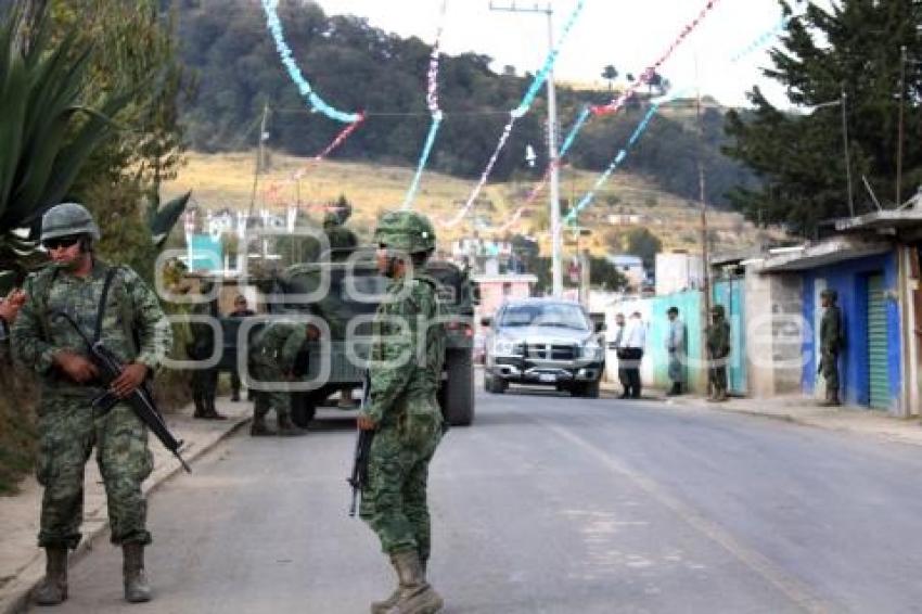 SANTA RITA TLAHUAPAN, Pue. a 17 de enero del 2015 Pobladores de Santa Cruz Moxolahuac, quemaron una de las tres unidades que retuvieron a ladrones mientras intentaban ordeñar un ducto de Pemex a la altura de su comunidad. Una camioneta fue incendiada en el lugar; al lugar arribó policía municipal de Santa Rita Tlahuapan, elementos del Ejercito Mexicano y Seguridad Fisica de Pemex. //Héctor Tenorio/Agencia Enfoque//