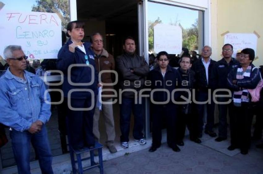 PUEBLA, Pue., 02 Febrero 2012.- Trabajadores de la Jurisdicción sanitaria 6 de los servicios de salud del estado, que comprende los 32 Centros de Salud de Puebla y los hospitales generales de la ciudad, realizaron un paro laboral en protesta por la no recontratación de 50 empleados aproximadamente sin justificación alguna y que contaban con más de 5 años trabajando para la secretaría. Exigen también la renuncia de Genaro Ramírez, jefe de dicha jurisdicción. //Agencia Enfoque//