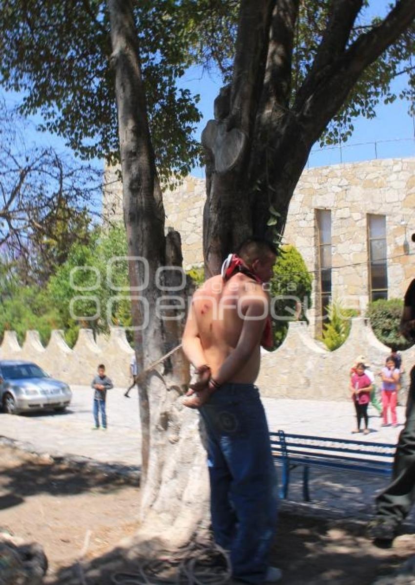 TEHUACÁN., Pue. 25 Abril 2015.- Cuatro sujetos fueron linchados por pobladores de Azumbilla, luego de que intentarán asaltar a un hombre. Después de varias horas de diálogo con los habitantes, los maleantes fueron rescatados por la Policia Estatal. //Agencia Enfoque//