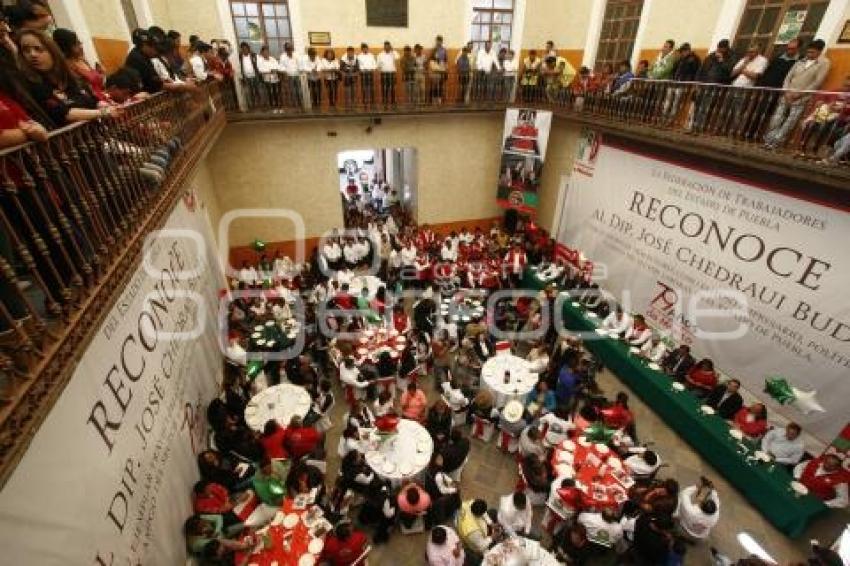 PUEBLA, Pue., 22 febrero de 2015.- El diputado local y dirigente municipal del PRI, José Chedraui Budib, recibió un reconocimiento por parte de la Confederación de Trabajadores Mexicanos de Puebla (CTM) que se realizó en las instalaciones del organismo obrero. //Francisco Guasco/Agencia Enfoque//