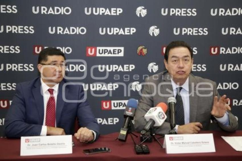 PUEBLA, Pue. 12 Marzo 2020.- Juan Carlos Botello Osorio, director de la Facultad en Comercio y VÍctor Manuel Caballero Solano, Director de la Facultad de Medicina de la UPAEP, presentaron los problemas económicos y aplicación de medidas preventivas para el control de Coronavirus Covid19. //Rafael Pacheco/Agencia Enfoque//
