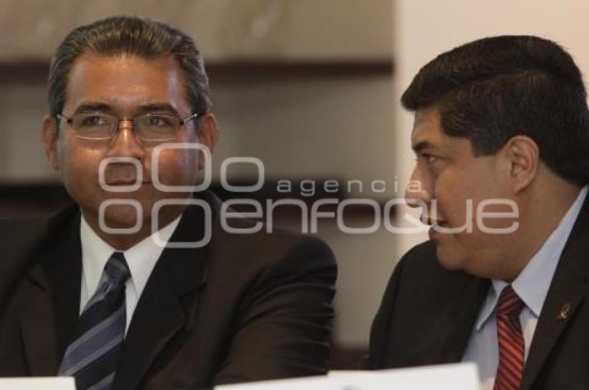 PUEBLA, Pue., 22 febrero 2010.- El diputado federal por el Estado de Puebla, Alberto Jiménez Merino, durante la reunión entre el sector empresarial y legisladores. //Agencia Enfoque//
