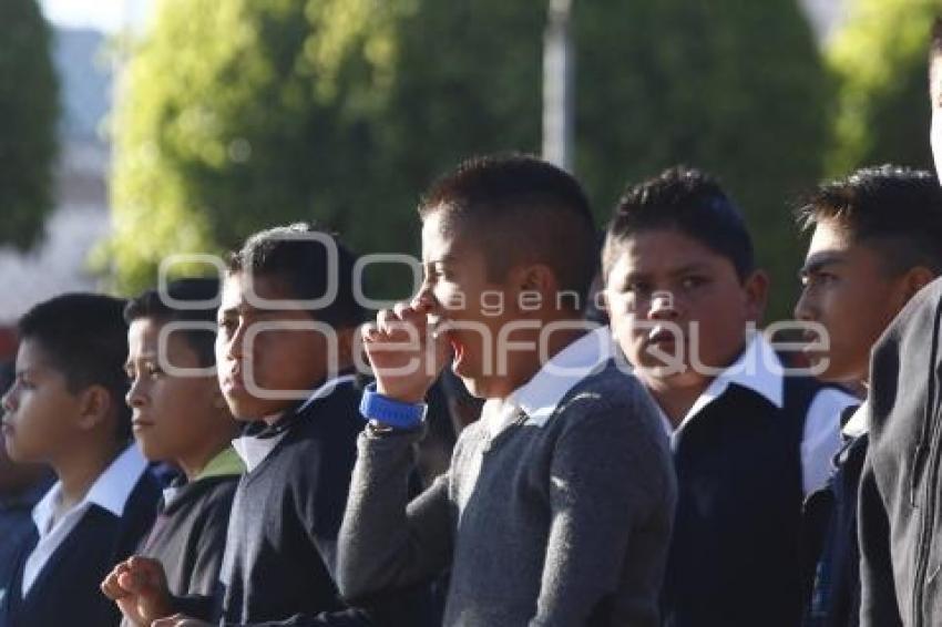 PUEBLA, Pue., 24 agosto 2015.- Estudiantes de una escuela secundaria técnica del sur de la ciudad, se reincorporan las aulas luego de culminar el periodo vacacional de verano. De acuerdo con datos de la Secretaría de Educación Pública (SEP) este lunes 24 del presente mes aproximadamente un millón 800 mil alumnos y 80 mil docentes de más de 13 mil escuelas públicas y privadas de la entidad poblana, inician el ciclo escolar 2015-2016. //Francisco Guasco/Agencia Enfoque//