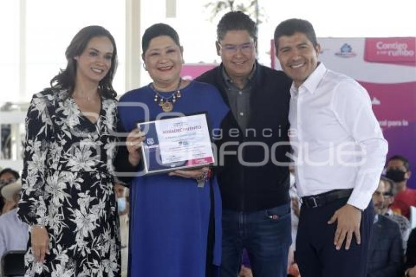 PUEBLA, Pue. 1 Marzo 2023.- El alcalde Eduardo Rivera acompañado por Liliana Ortiz, presidenta del DIF municipal entregan reconocimientos durante la presentación de los resultados por el programa de cirugía de cataratas, “Contigo Veremos Más”. //Imelda Medina/Agencia Enfoque//