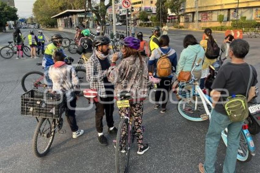 PUEBLA, Pue. 02 Mayo 2023.- Durante una manifestación, ciclistas cierran la circulación vial en ambos sentidos del bulevar 5 de Mayo a la altura de la FGE. //Imelda Medina/Agencia Enfoque//