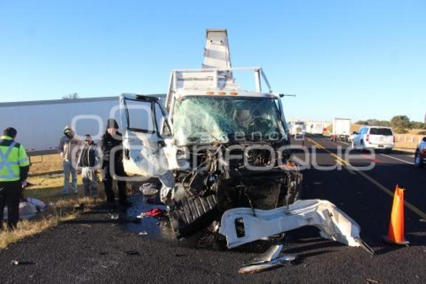 PUEBLA, Pue., 14 de noviembre 2017.- Un hombre de casi 60 años murió esta madrugada al registrarse un aparatoso choque entre un camión y un tráiler, en el kilómetro 5 de la autopista Amozoc-Perote. //Agencia Enfoque//