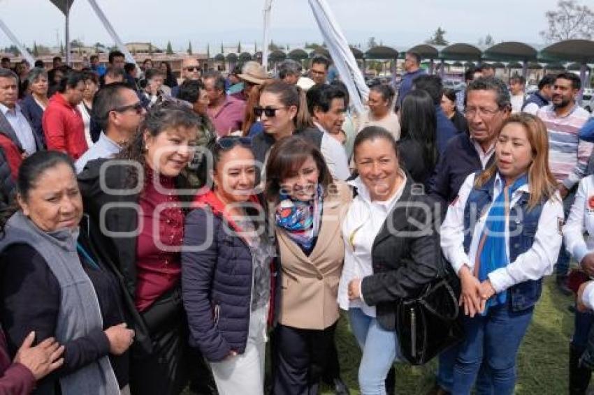 TLAXCALA, Tlax. 18 Febrero 2025.-La Gobernadora de Tlaxcala, Lorena Cuéllar Cisneros, colocó la primera piedra para la construcción de la Central de Abastos en el municipio de Huamantla, que tendrá una inversión 205 millones de pesos. //Liz Romero/Agencia Enfoque//
