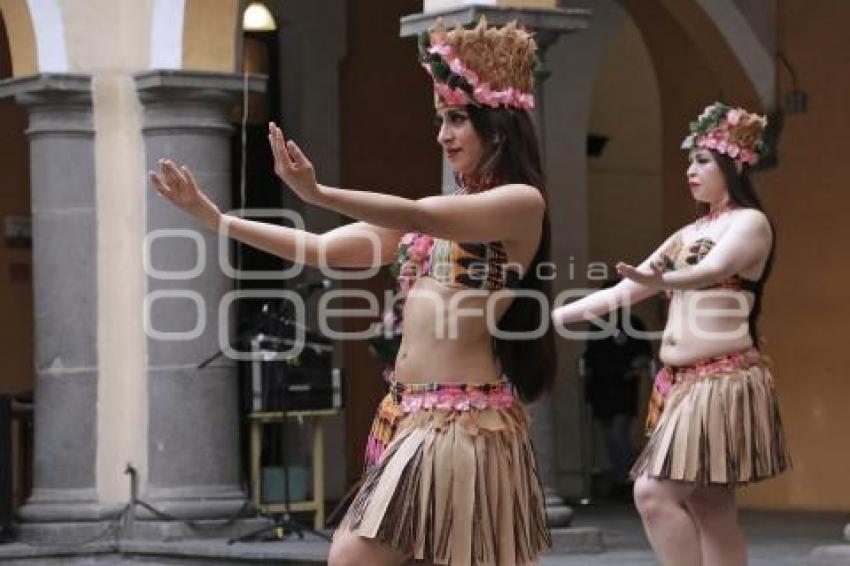 PUEBLA, Pue. 6 Marzo 2022.- Se presenta las bailarinas realizando distintas facetas de la Danza Polinesia, como parte de las actividades de la Casa de la Cultura. //Mara González/Agencia Enfoque//