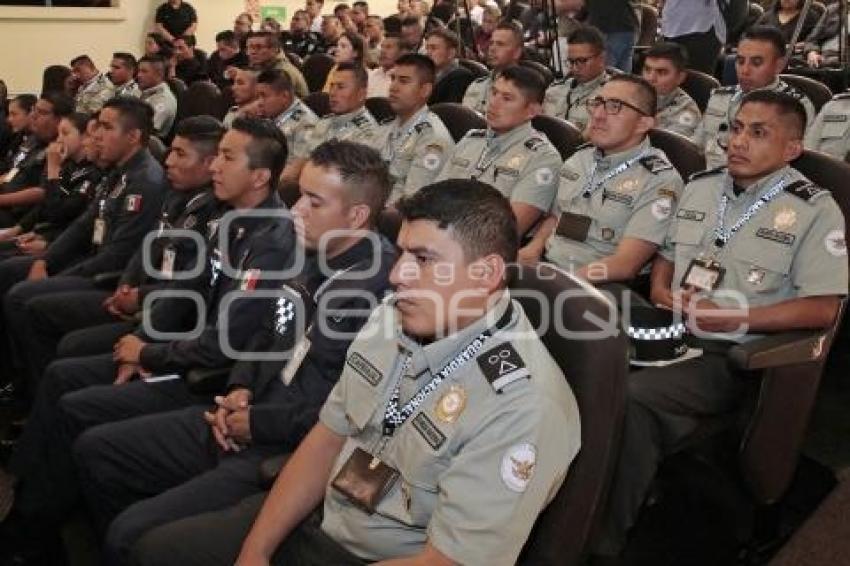 PUEBLA, Pue. 21 Septiembre 2023.- Elementos policiales acuden a la inauguración del Seminario de Seguridad Internacional en el Teatro de la Ciudad. //Mara González/Agencia Enfoque//