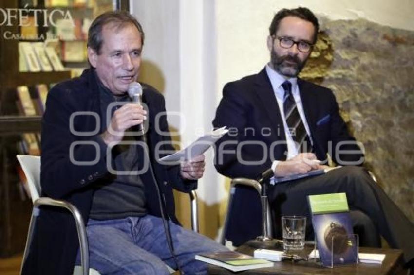 PUEBLA, Pue. 12 Enero 2018.- El periodista Fernando Canales y y el rector de la UDLAP, Luis Ernesto Derbez, presentaron el libro Un Mundo de Historias del escritor Diego Gómez Pickering. //Hilda Ríos/Agencia Enfoque//