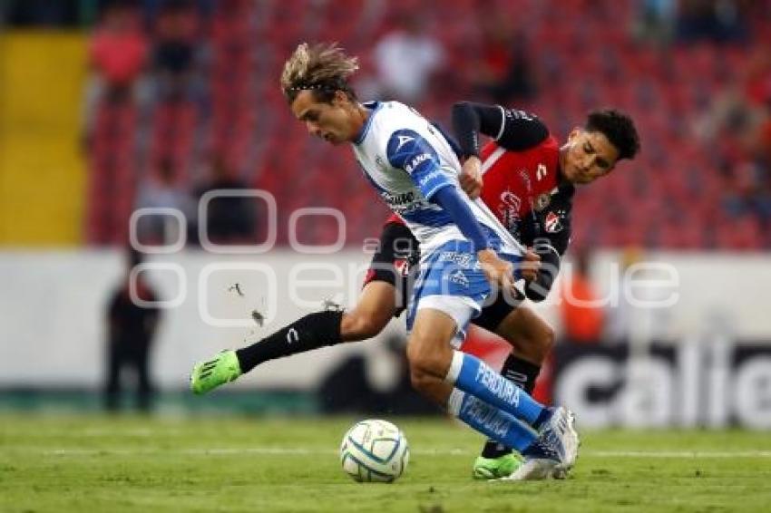GUADALAJARA, Jal. 20 Agosto 2022.- Jugada del partido entre Atlas y Club Puebla correspondiente a la jornada 10 del torneo Apertura 2022 celebrado en el estadio Jalisco. //Francisco Guasco/Agencia Enfoque//