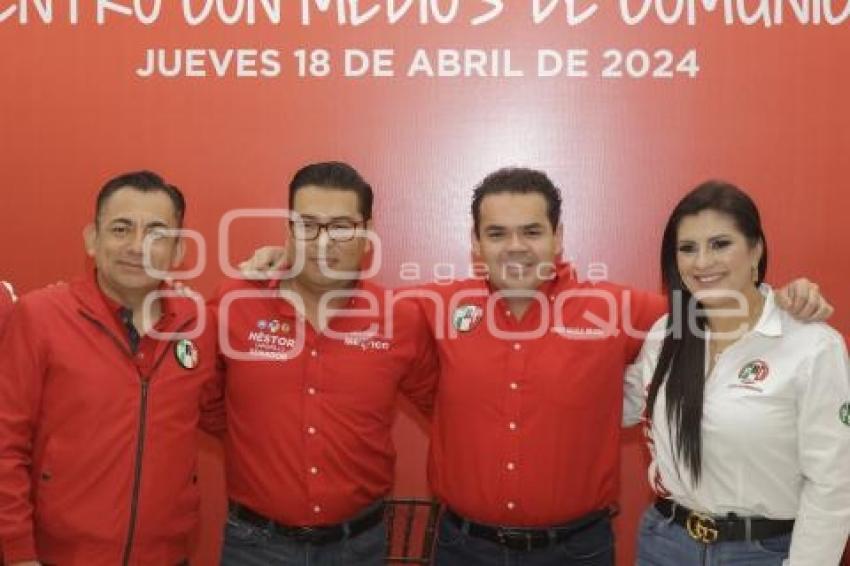 PUEBLA, Pue. 18 abril 2024.- El candidato a senador por la coalición Fuerza y Corazón por México, Néstor Camarillo y el diputado, Pablo Angulo Briseño encabezaron una rueda de prensa. //Oscar Rodríguez/Agencia Enfoque//