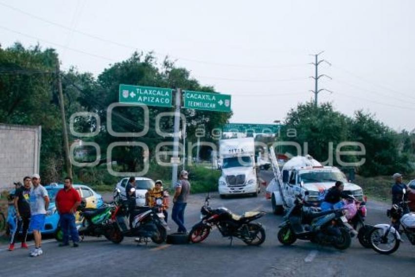 TLAXCALA, Tlax. 27 Mayo 2024.- Vecinos del fraccionamiento Arcos Altos cerraron la carretera federal Tlaxcala-Temen, demandan desabasto de agua potable en sus domicilios, en Popocatla, Ixtacuixtla. //Rommel Pichardo/Agencia Enfoque//