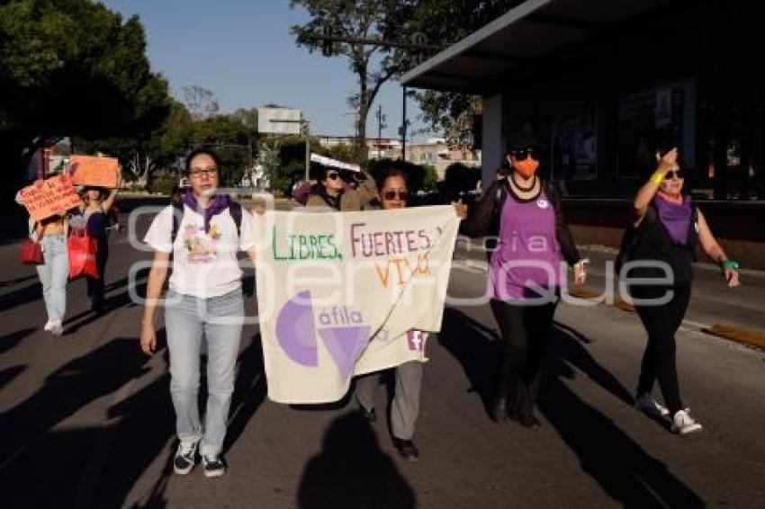 PUEBLA, Pue. 25 Noviembre 2024.- Integrantes de colectivos feministas realizan una marcha para conmemorar el Día Internacional de la Eliminación de la Violencia contra la Mujer, con un recorrido desde el Zócalo de Puebla rumbo a la Fiscalía. //Karen Rojas/Agencia Enfoque//