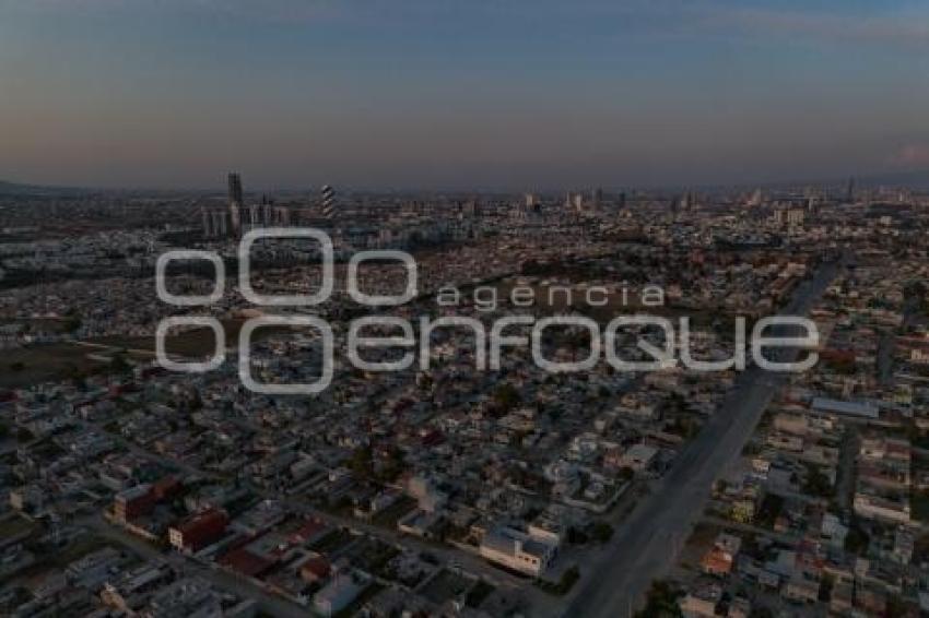 PUEBLA, Pue. 18 Enero 2025.- Así se aprecia desde la altura, el atardecer al sur de la ciudad de Puebla. //Oscar Rodríguez/Agencia Enfoque//