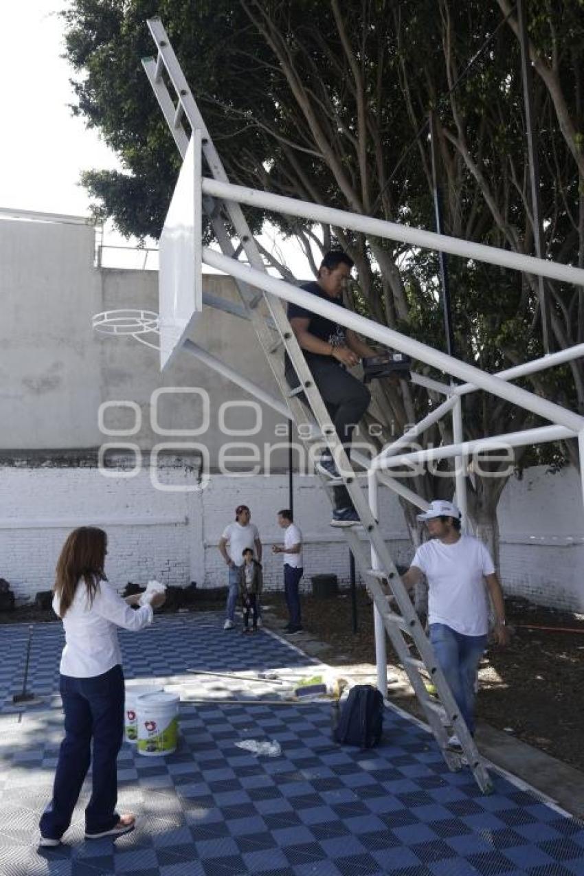 PUEBLA, Pue. 2 Marzo 2025.- Aspecto de la faena comunitaria en la escuela Cadete Vicente Suárez, en la colonia Santa Cruz Los Ángeles, organizada por el Gobierno Estatal. //Rafael Pacheco/Agencia Enfoque//