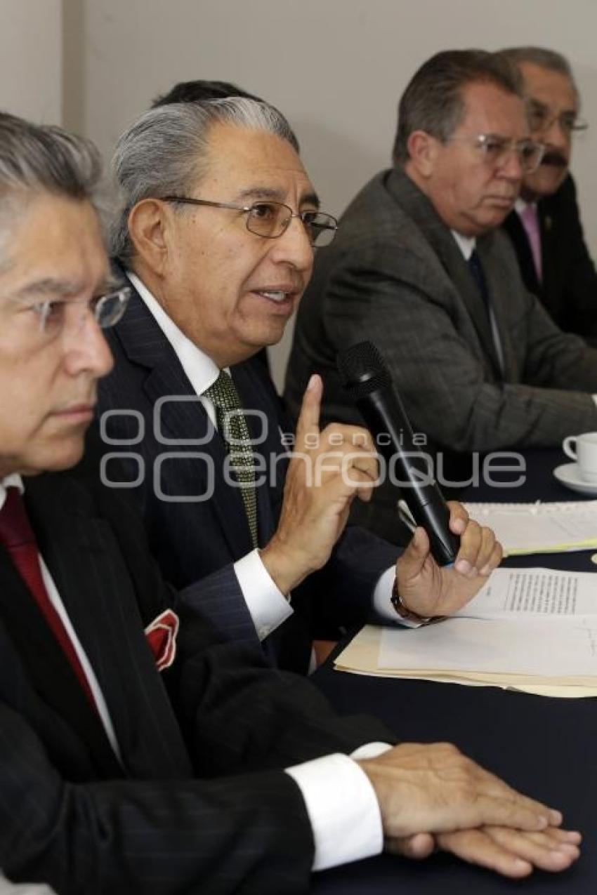 PUEBLA, Pue., 26 septiembre 2018.- Hugo Sanchez, Presidente de la asociación Bolsa Inmobiliaria de Puebla y Eduardo Lara, Presidente del Colegio de Notarios del Estado de Puebla, ofrecieron rueda de prensa y realizaron firma de convenio entre las asociaciones que presiden. //Mireya Novo/Agencia Enfoque//