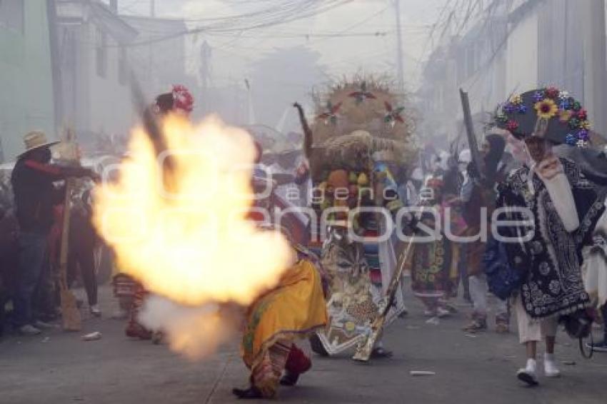 PUEBLA, Pue. 19 Marzo 2023.- El carnaval de la junta auxiliar de San Baltazar Campeche se vive con música, color y pólvora además de trajes espectaculares. //Rafael Pacheco/Agencia Enfoque//