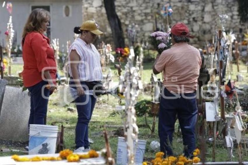 PUEBLA, Pue. 1 Noviembre 2024.- Asisten familias poblanas a limpiar y adornar las tumbas de sus seres queridos fallecidos, en el Panteón Municipal, como parte de la tradicional celebración de Día de Muertos. //Rafael Pacheco/Agencia Enfoque//