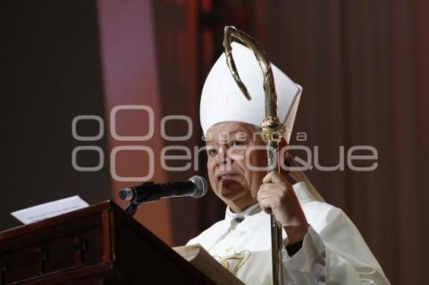 PUEBLA, Pue., 17 octubre 2015.- Se lleva a cabo la celebración eucarística del primer Encuentro Nacional de Movimientos Católicos “Juntos por México” oficiado por el arzobispo de Puebla, Víctor Sánchez Espinosa, y que se desarrolla en el Centro Expositor de Puebla. //Francisco Guasco/Agencia Enfoque//