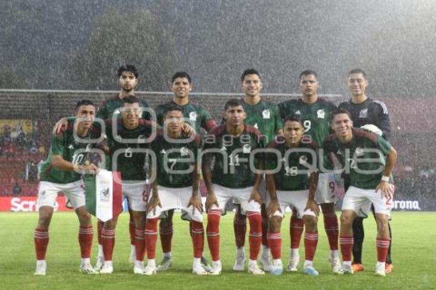 TLAXCALA, Tlax. 09 Septiembre 2023. Fotografía de grupo de la Selección Nacional de México sub-23 previo al partido que se realiza en el Estadio Tlahuicole. //Liz Romero/Agencia Enfoque//