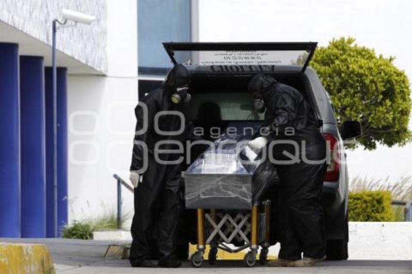 SAN ANDRÉS CHOLULA, Pue. 13 Septiembre 2021.- Personal del servicios funerarios traslada el cuerpo de una persona fallecida por Covid-19 en el Hospital General de Cholula. //Rafael Pacheco/Agencia Enfoque//