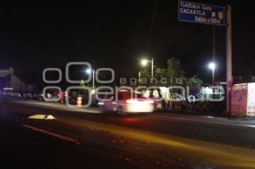 San Martín Texmelucan Pue. 07 de noviembre de 2015.- Muere una persona atropellada, despues de intentar cruzar con su bicicleta la autopista México-Puebla a la altura del kilómetro 91+240 con sentido a la capital poblana. //Héctor Tenorio//Agencia Enfoque//