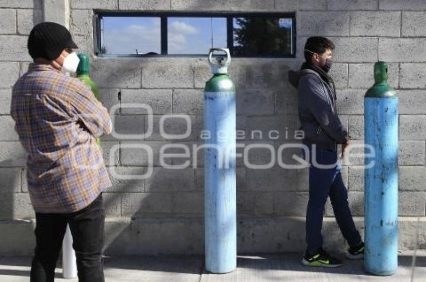 PUEBLA, Pue. 28 Enero 2021.- Usuarios esperan al menos 4 horas para llenar un tanque de oxígeno en distribuidora ubicada en el Parque Industrial Puebla 2000. //Rafael Pacheco/Agencia Enfoque//