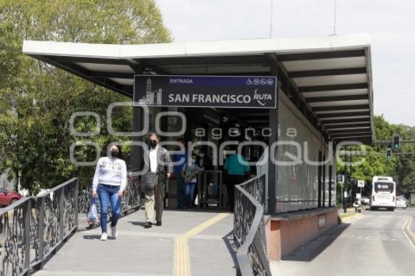 RUTA . LÍNEA 3 PUEBLA, Pue., 8 Octubre 2020.- Aspecto de la terminal San Francisco del sistema de metrobús línea 3. //Mireya Novo/Agencia Enfoque// Agregar a Carrito Comprar
