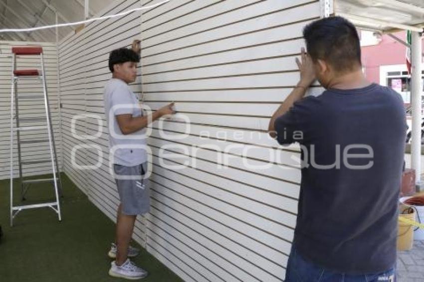 SAN PEDRO CHOLULA, Pue. 30 Agosto 2023.- Avanza la instalación de stands de expositores para la próxima edición de la Feria de San Pedro Cholula, que tendrá lugar del 1 al 17 de septiembre en ese Pueblo Mágico. //Rafael Pacheco/Agencia Enfoque//