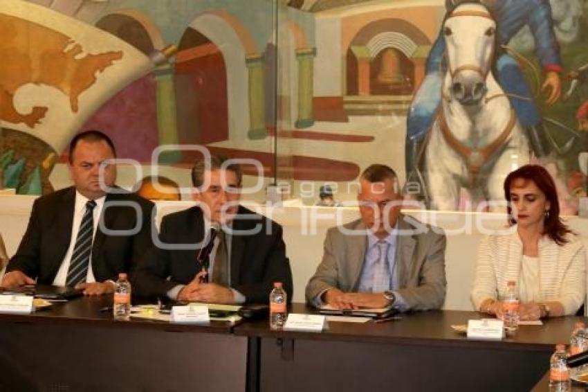 PUEBLA, Pue., 04 de Mayo 2016.- Diódoro Carrasco, Secretario General de Gobierno, acompañado del representante de la Secretaría de Gobernación Federal (SEGOB), José Antonio del Castillo, del Secretario Estatal de Finanzas y Administración, Guillermo Bernal Miranda y del Titular de la Secretaria de Seguridad Pública, Jesús Rodríguez Almeida, encabezó la firma del Convenio del Programa Nacional para la Prevención Social de la Violencia y la Delincuencia (PRONAPRED). //Mary Cortez/Agencia Enfoque//