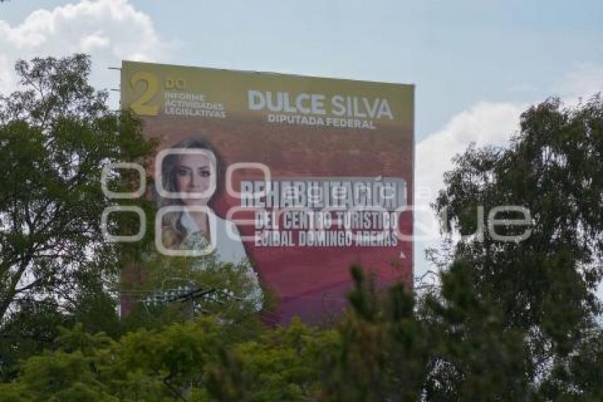 TLAXCALA, Tlax. 24 Octubre 2023.- Espectacular que promociona el Segundo Informe de Labores de la diputada federal Dulce Silva, se observa sobre las diferentes calles de la capital de Tlaxcala. //Liz Romero/Agencia Enfoque//