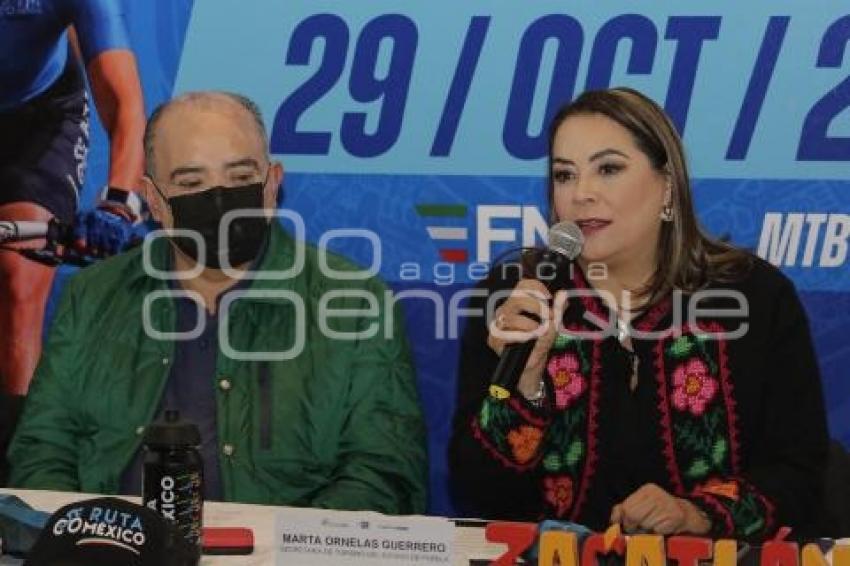 PUEBLA, Pue. 18 Octubre 2023.- La Secretaria de Turismo, Marta Ornelas Guerrero y el presidente municipal de Zacatlán, José Luis Márquez Martínez anunciaron el Campeonato Nacional MTB Medio Maratón y Gravel que se realizará el 29 de octubre en ese pueblo mágico. //Oscar Rodríguez /Agencia Enfoque//